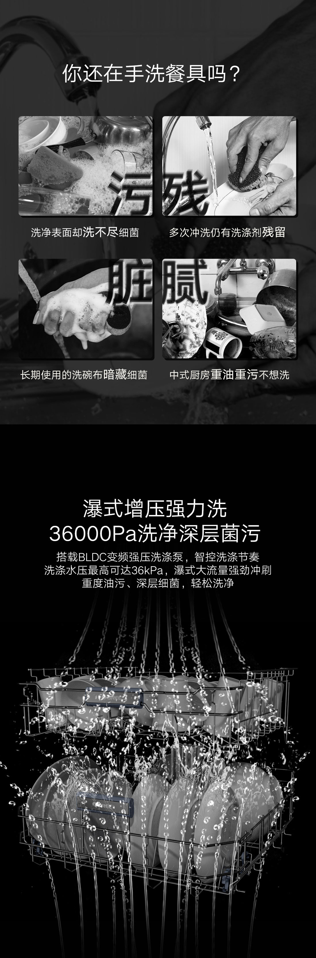 搭載瀑式增壓強洗科技,36KPa洗凈深層菌污,除菌率達99.99%;洗烘除存一體,存放7天也干爽