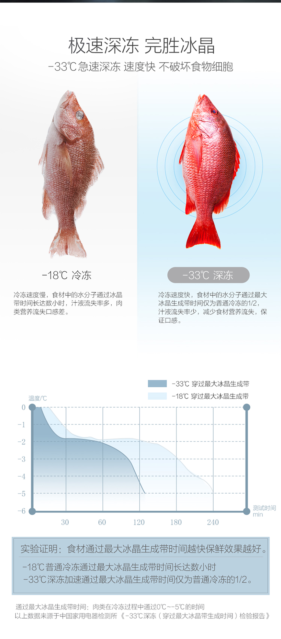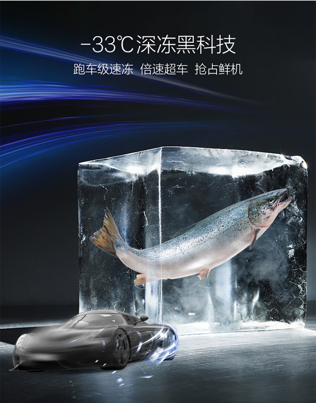 搭載-33℃深凍鎖鮮科技,肉汁飽滿更長久。采用離子長效抗菌凈味,抗菌率高達99.9%。3D沐風,風冷養鮮,無需鑿霜。