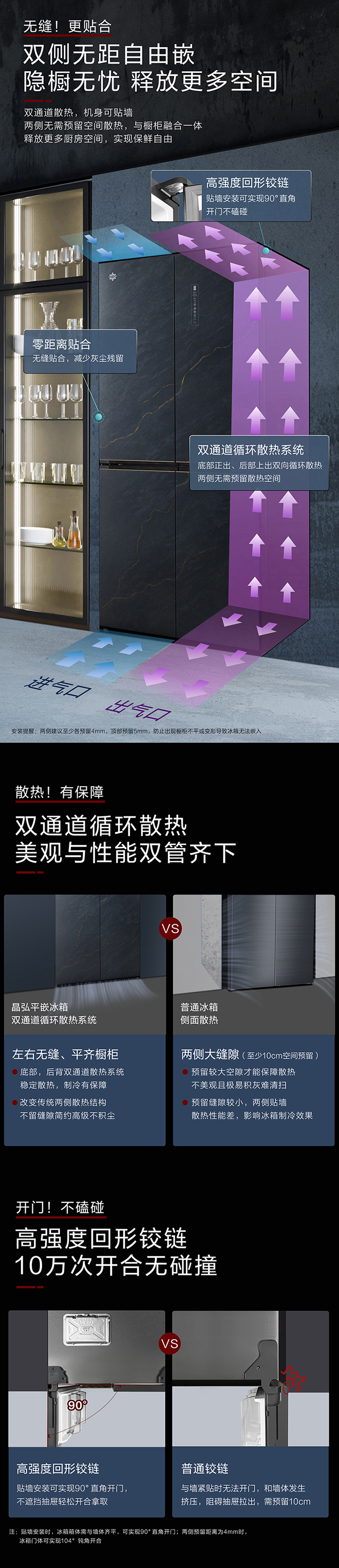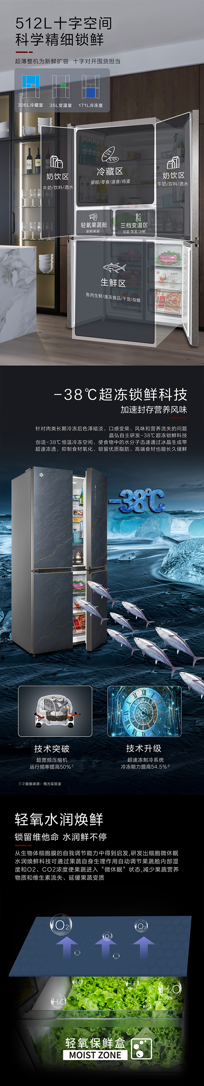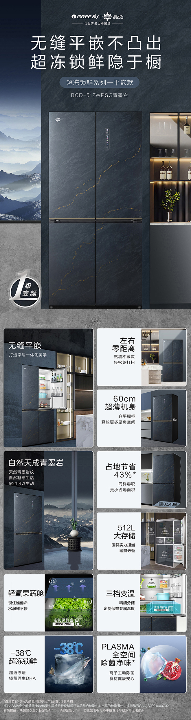 -38℃超凍鎖鮮;PLASMA全空間除菌凈味;平齊不凸出;雙通道循環散熱