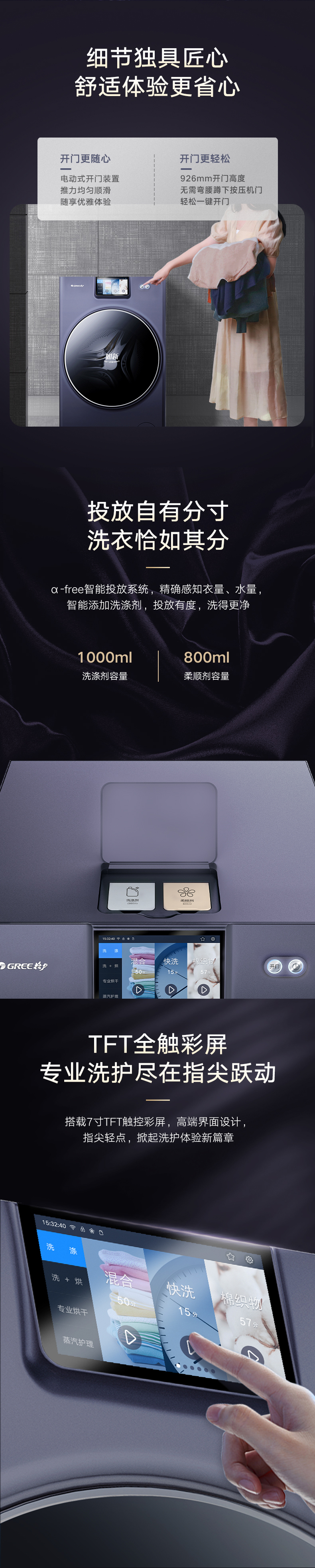 37℃低溫柔烘不傷衣;全域超微蒸汽洗2.0;ICleaner全域智清潔