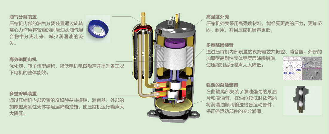 外機(jī)、內(nèi)機(jī)均采用直流電機(jī),相對普通電機(jī)效率提高30%以上;電機(jī)在高溫高濕環(huán)境下能持續(xù)穩(wěn)定運(yùn)行,內(nèi)電機(jī)在-20℃~40℃、外電機(jī)在-20℃~60℃范圍內(nèi)均可持續(xù)穩(wěn)定運(yùn)行。 |